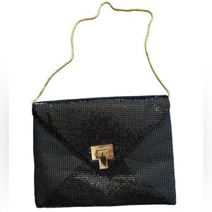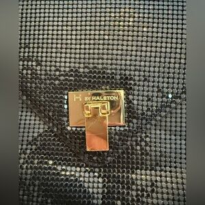 H by Halston Black Mesh Evening Bag with Gold Chain & Clasp