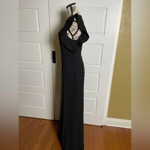 H by Halston Black Mixed Media Flutter Sleeve Maxi Dress with Illusion Skirt 6