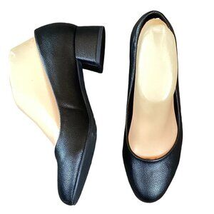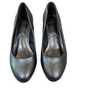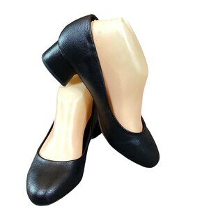 H by Halston Block Heel Pumps Sz 7.5 Black Pebbled Leather "Dejavu" 243P