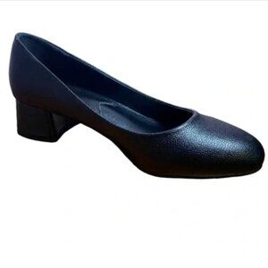 Description: New without box, H by Halston Dejavu Pumps. Retro Look Pump with Rounded Almond Toe, Padded Footbed, Chunky Square/Block Heel, Pebbled Faux Leather Upper with Rubber Outsoles. Cute, sensible, comfortable heels, great for work or everyday wear.