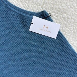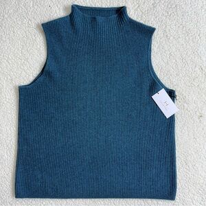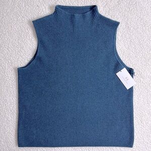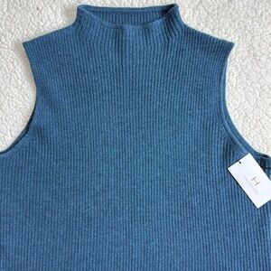 H by Halston Blue Sleeveless Turtleneck Sweater