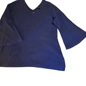 H by Halston Blue V Neck Pullover Sweater Long Bell Sleeves Sz 1X