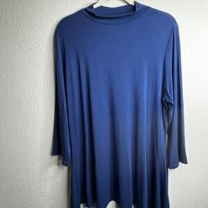 H by Halston Essentials Mock Neck 3/4-Sleeve Tunic Blue Sz L