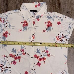 H by Halston • Floral Jet Set Jersey Button Down Blouse