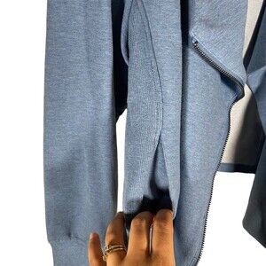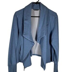 H by Halston French Terry Knit Moto Flyaway Jacket Heather D blue size 16 Pocket