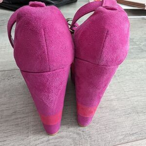 H by Halston GiGi Hot Pink Suede Platform Sandals Fuchsia Magenta Sz 7