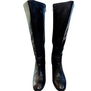 H by Halston Ladies Leather Tall Heeled Boots Fran Black Size 7 Side Zipper