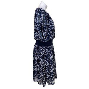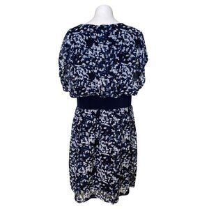 H by Halston Layered Dress, Brush Stroke Blue Sky Cap Sleeves Women's Size M