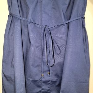 H by Halston NWT Classic Navy Linen Button Up Belted Knee Length Dress - MEDIUM