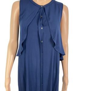 H by Halston Navy Button Front Flowey Sleeveless Midi Length Dress (12)