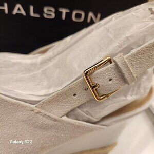 H by Halston Stella wedge slingback espadrilles. NIB. Size 9. Color is a off white/cream color. Ob back heel of one shoe there are a few dirt markings (not rips)/see final picture. Smoke free home. No odors. All offers are welcome. Thank you! Original box/packaging.
