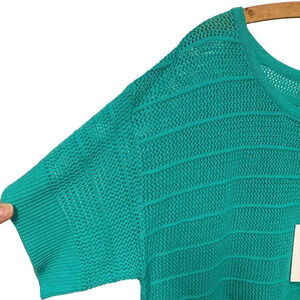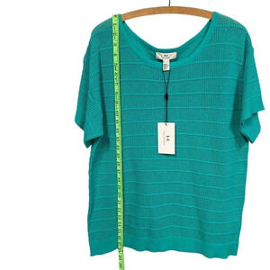 H by Halston Turquoise Pullover Knit Short Sleeve Boat Neck Sweater, Size M, NEW