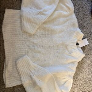 Chic white turtleneck sweater. Cozy knit design. Perfect for cool weather.