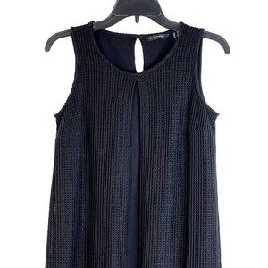 H by Halston Womens Black Round Neck Waffle Knit Kaftan Sleeveless Dress Size 2P Clean, Neat, No Fading