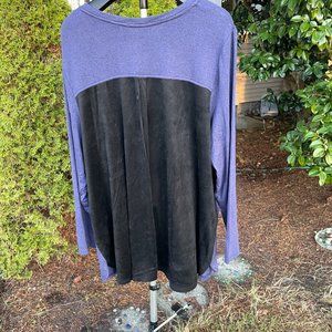 Purple front, black micro suede back, high low hem, long sleeve medium weight tee.