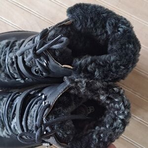Lining: Plush black shearling for warmth and comfort