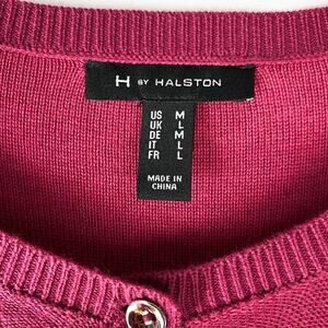 H by Halston Ombre Cardigan Sweater Women M Mulberry Red Ribbed Career Preppy
