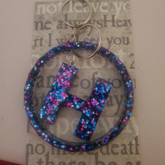 H resin keychain with matching circle. Blues and pinks. Can make any letter. Comes from a pet free smoke free home