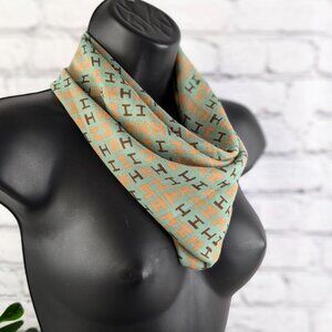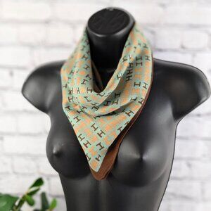 "H" pattern scarf, green orange & brown, magnetic clasp, headwrap neckerchief