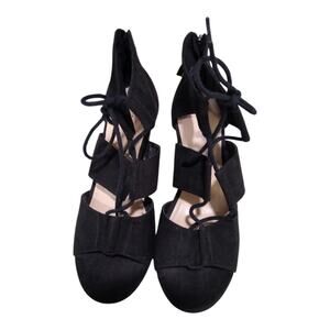 🎉[H141] Nine West Black Suede Open Toe Chinese Laundry Lace Up Wedges, Size 7