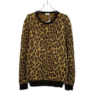 H14321 Saint Laurent slp Saint Laurent Brown Leopard Wool Round Neck Long Sleeve Knitted Sweater M Size