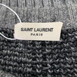 H14322 Saint Laurent slp Saint Laurent Dark gray checked wool round neck long sleeve knit sweater size L slight stains