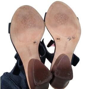 Vince Camuto Black Leather Sandals Strappy Block Heels & Buckle (Rare)