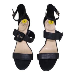 🎉[H144] Vince Camuto Black Leather Strappy Buckle Block Heel Sandals, Size 9