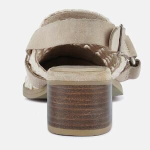 Made with 100% Cotton and Genuine real soft leathers - this pair of block stack heeled Sandal is a beautiful piece. The mesh detail on the upper body gives it an unmatched style. The simple and elegant construction makes it one to dress up for work and beyond. The quality metallic buckle secures the feet while the cushioned insole with latex keeps feet cool and relaxed.