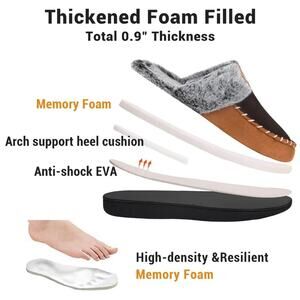 These women's slippers are fully lined with a furry plush for extra warm and soft, providing moisture wicking and regulates temperature for ultimate comfort. The 3 layers of memory foam and sponge cushioning provide superior comfortability, flexibility and support you need in a slipper.