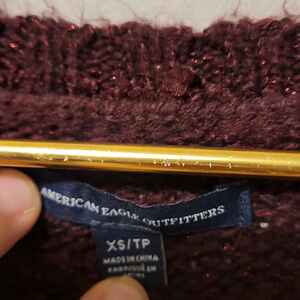 H16-AMERICAN EAGLE: WOMENS XS/TP BURGANDY SWEATER WITH SPARKLE
