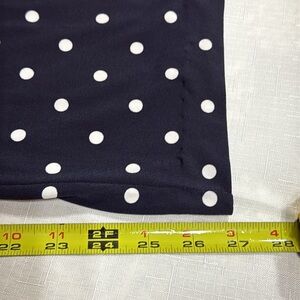 (H1) The Limited Navy blue polka dot zip-up off-the-shoulder wide-leg jumpsuit, size M, in perfect used condition, has a cropped hem, see photo for details Elegant navy jumpsuit with white polka dots. Features a sleeveless design. Ideal for versatile styling.