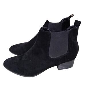 [H257] Women's Ankle Suede Chelsea Black Leather Pull On Heeled Booties, Size 7