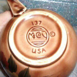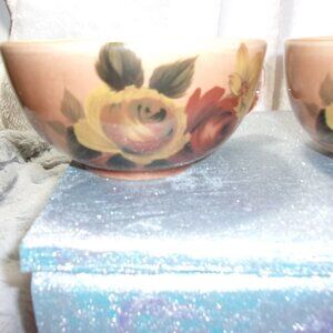 THIS IS A SET OF 2 SOUP BOWLS THAT ARE MCCOY POTTERY, MADE IN THE 70'S #137. BOTH ARE BROWN WITH PRETTY FLORAL ART ON THE FRONT. ONE OF THE BOWLS HAS A TINY BUMP IN THE FLOWERS. (SEE PICS). THERE ARE NO CHIPS OR CRACKS THAT I CAN FEEL OR SEE. THEY ARE PRELOVED AND ARE IN GOOD CONDITION. COMES FROM A SMOKE FREE HOME AND REASONABLE OFFERS ARE ALWAYS WELCOME AND CONSIDERED.
