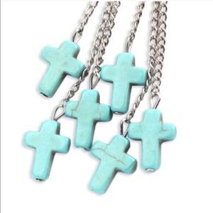 Pretty turquoise cross earrings. Silver toned zinc alloy. New in package.