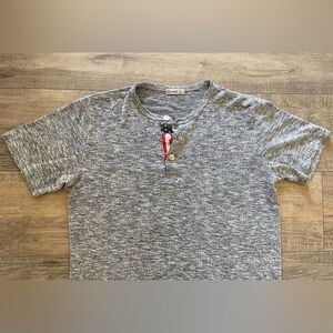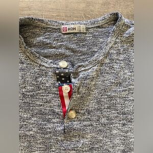 H2H men’s size large gray w American flag detail short sleeve knit henley shirt