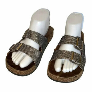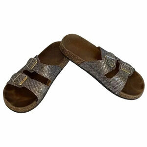 H2K 9 silver glitter slip on sandals
