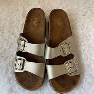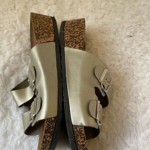 H2K silver straps buckles wedge cork sandals size Euro 42 pre owned in good used condition normal wear no tear see all pictures any questions please message.