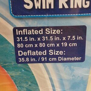H2O GO Swim Ring Pool Float. Great for the Pool or Beach. Very Colorful. Inflated size 31.5" x 31.5" x 7.5". Recommended age 10+.