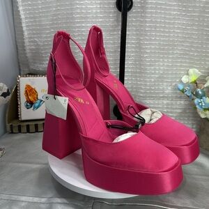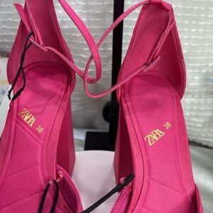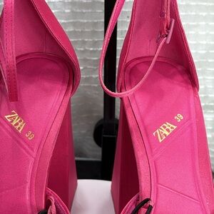 (H3) ZARA, Pink platform heels (new), size 39/8 and 36/5.5 USA, new with tag, see photo for more details Step out in style with these vibrant pink platform heels. Perfect for any occasion, these shoes offer both comfort and elegance.