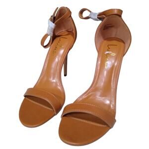 [H315] LULUS Elsi Naked Brown/Tan Ankle Strap Heels, Size 8.5