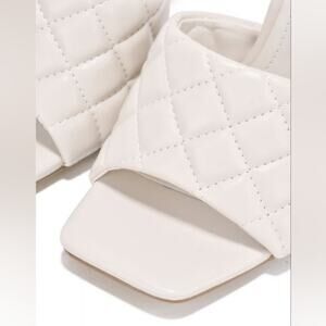 [H329] Cape Robbin "Stitch" Off White Square Toe Heels, Size 9M