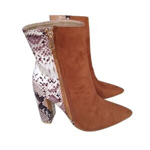 Faux suede and snakeskin boots super cute for girls night out or the office. Pair with skinny jeans, leggings, a skirt, the possibilities are endless! Recommend sizing up 1/2 size.