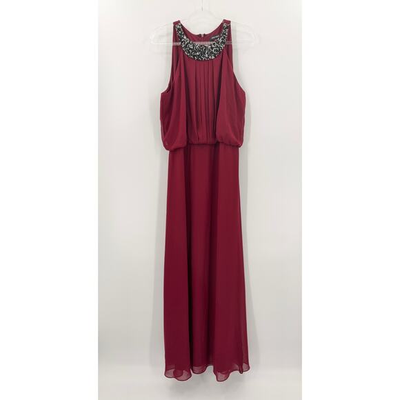 Item: Nine West Burgundy Beaded Maxi Dress Womens 16 Formal Chiffon Gown