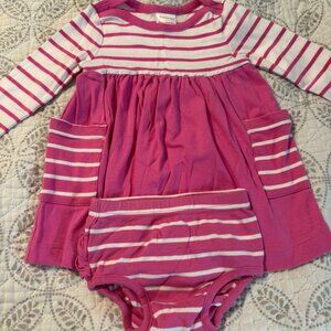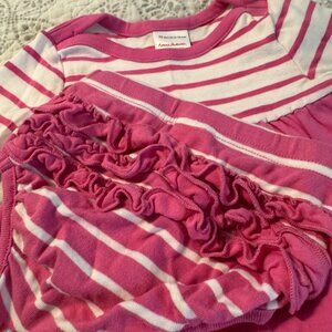 Pink and white stripped Hanna Andersson playset with ruffle bum - good used condition with possible light spots