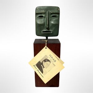 HAAB Elisa Camarena Green Death Mask Sculpture with Wood Stand, 'Death Mask'