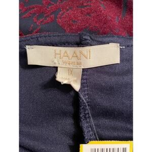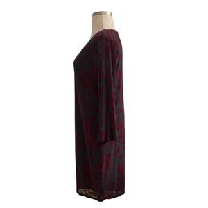 HAANI 1X Wine Flocked Velvet Floral Print Bell Sleeve Hem