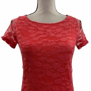 Haani Red Lace Shift Mini Short Sleeve Dress Size Small