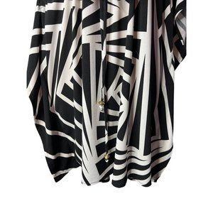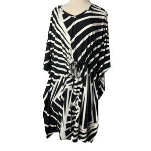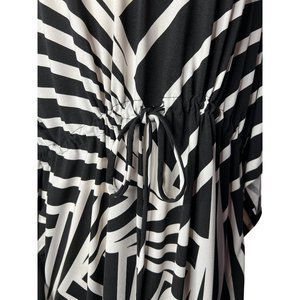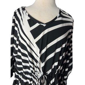 HAANI Women's Dress 2X Black White Striped KneeShort Sleeve Stretch V-Neck