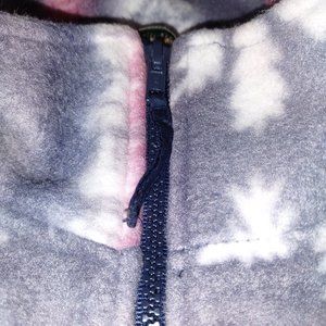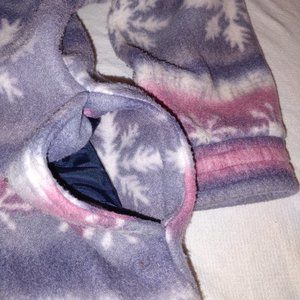 HABAND Rose and Violet with white snowflake pattern, western style pattern, vintage woman's jacket, soft fleece, side pockets, medium weight, woman's size MED, chest 46 inches length 30 inches, sleeves 17 inches (1lb 5oz)